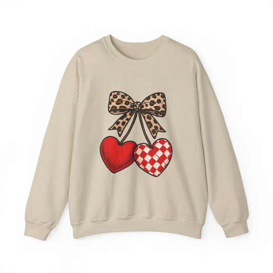 Leopard Bow Double Heart Sweatshirt - Valentine's Cozy Crewneck