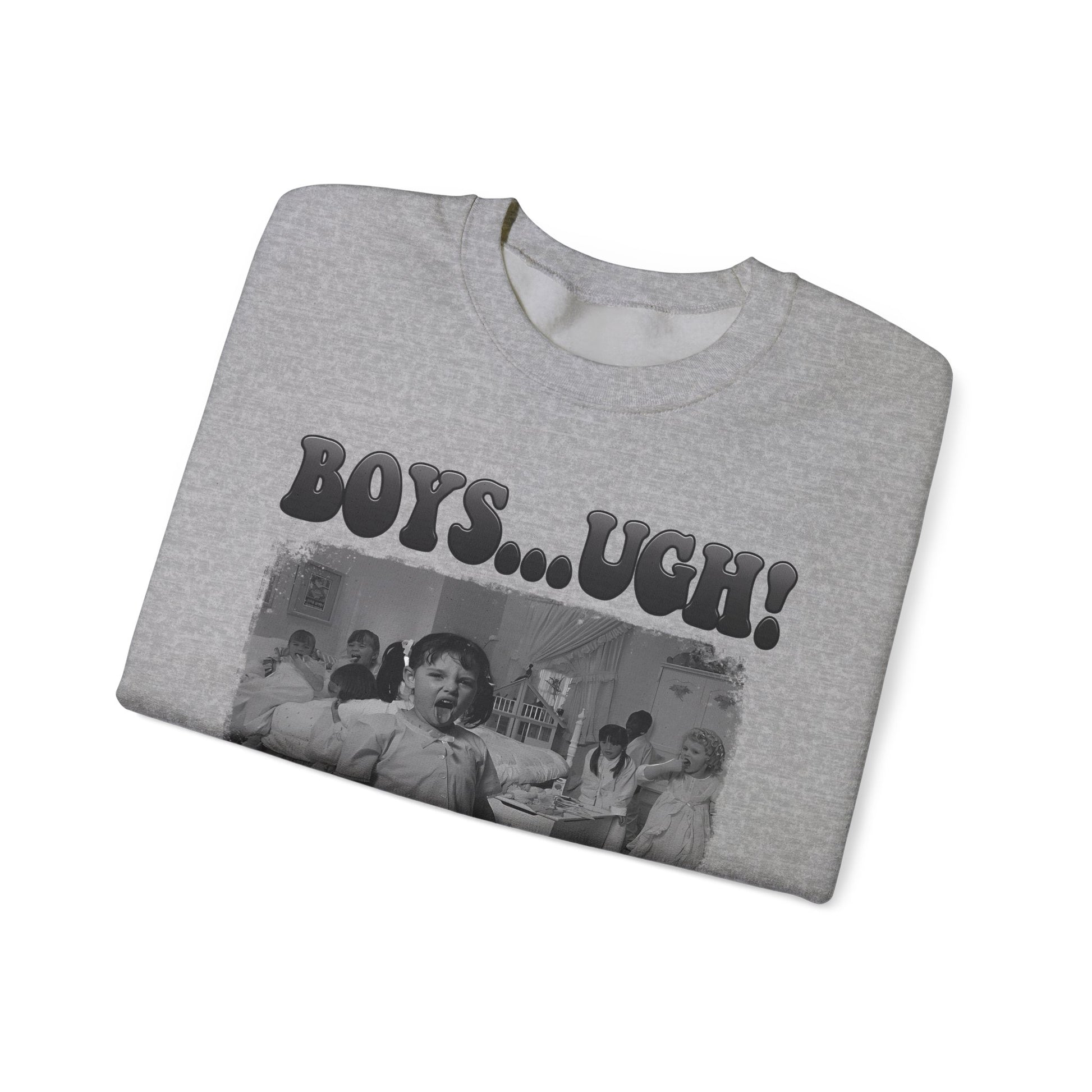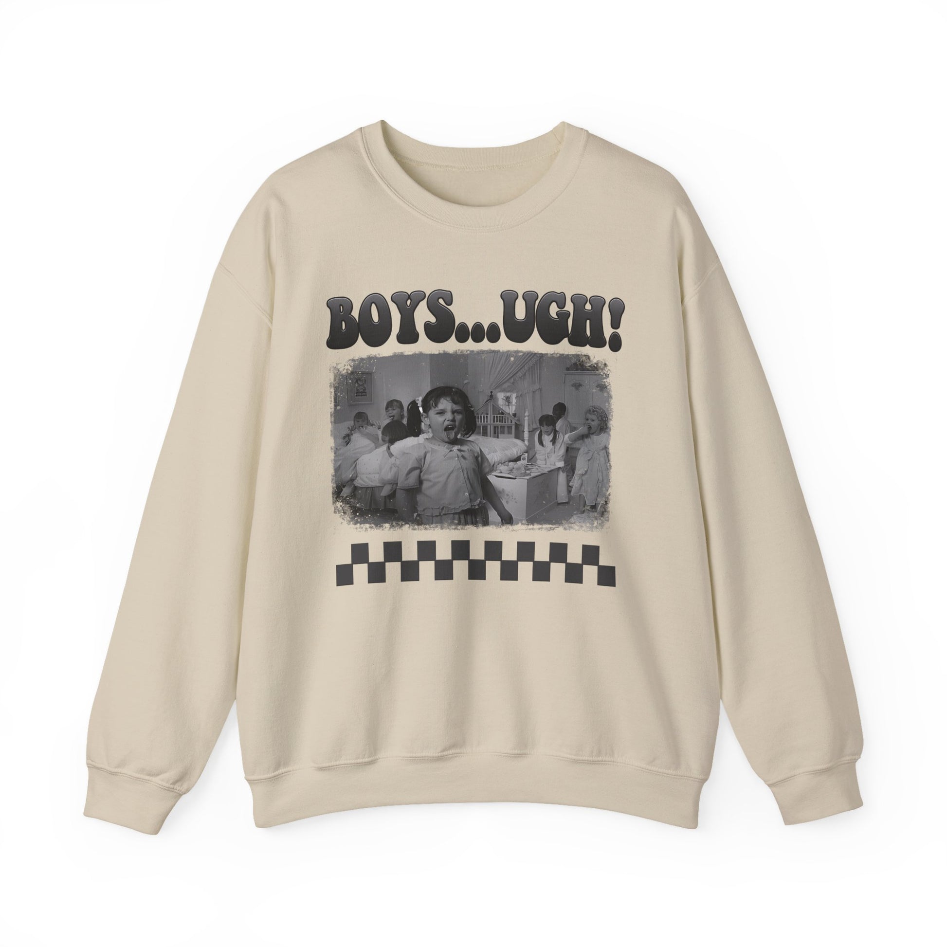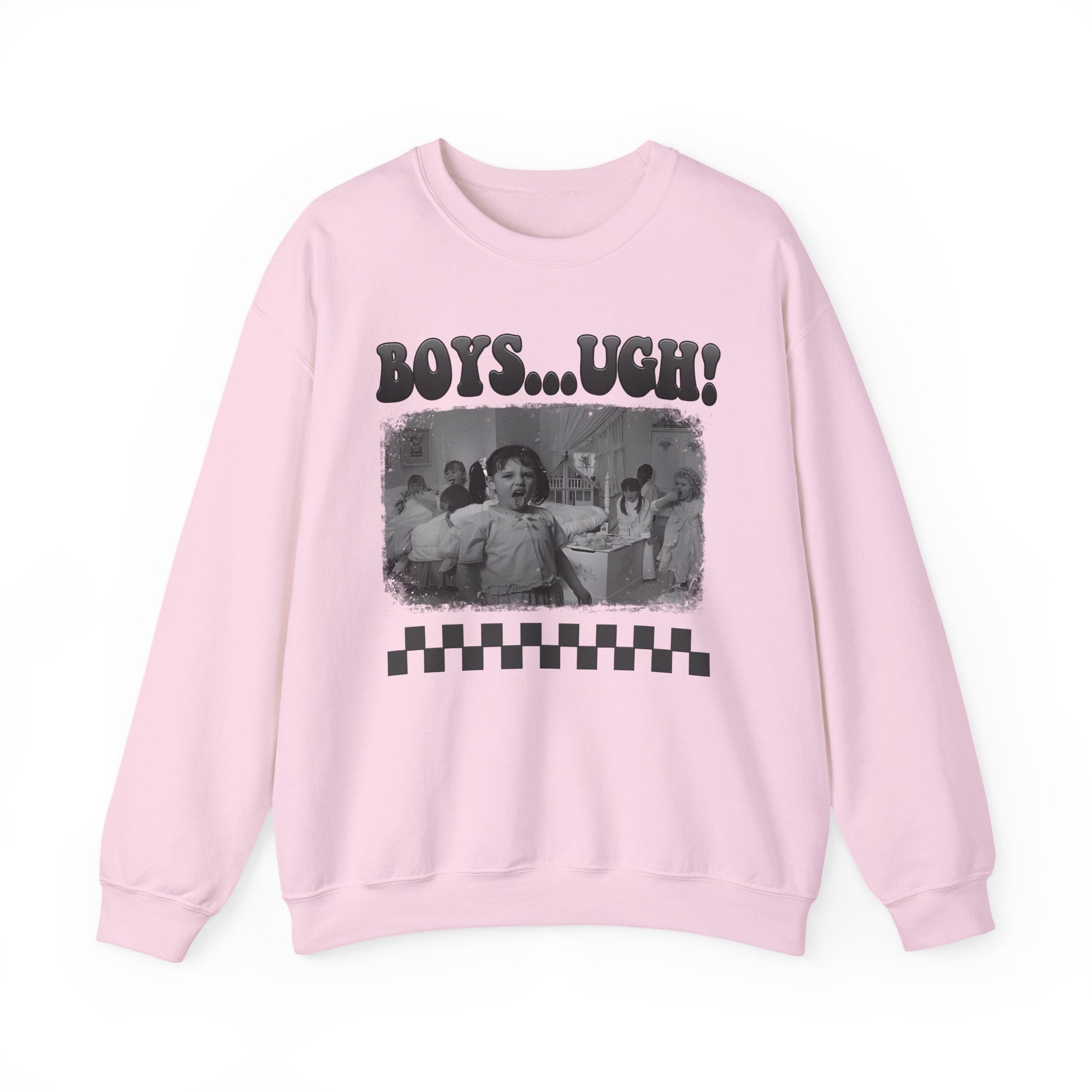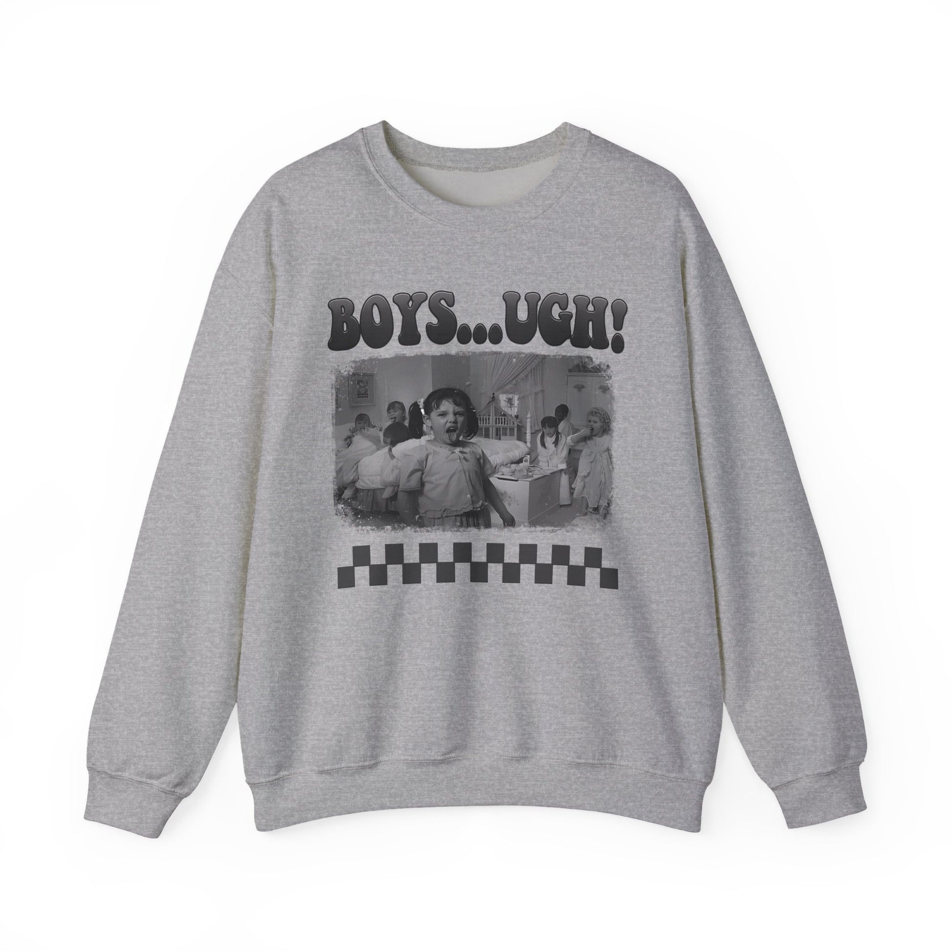 Copy of 'Boys...Ugh!' Graphic Crewneck Sweatshirt — Retro Grayscale Checkerboard Tee for Teens & Young Adults