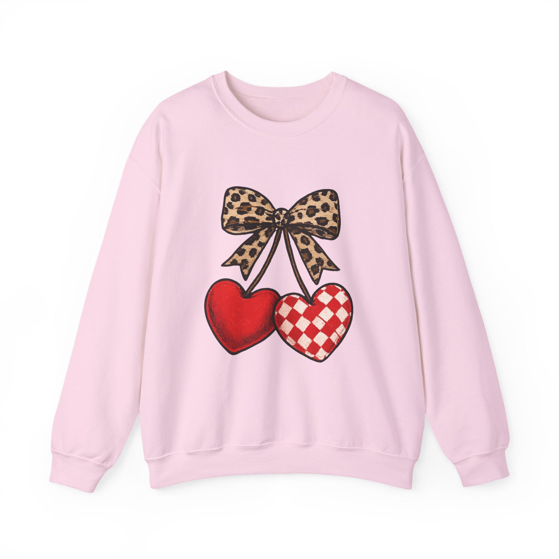 Leopard Bow Double Heart Sweatshirt - Valentine's Cozy Crewneck