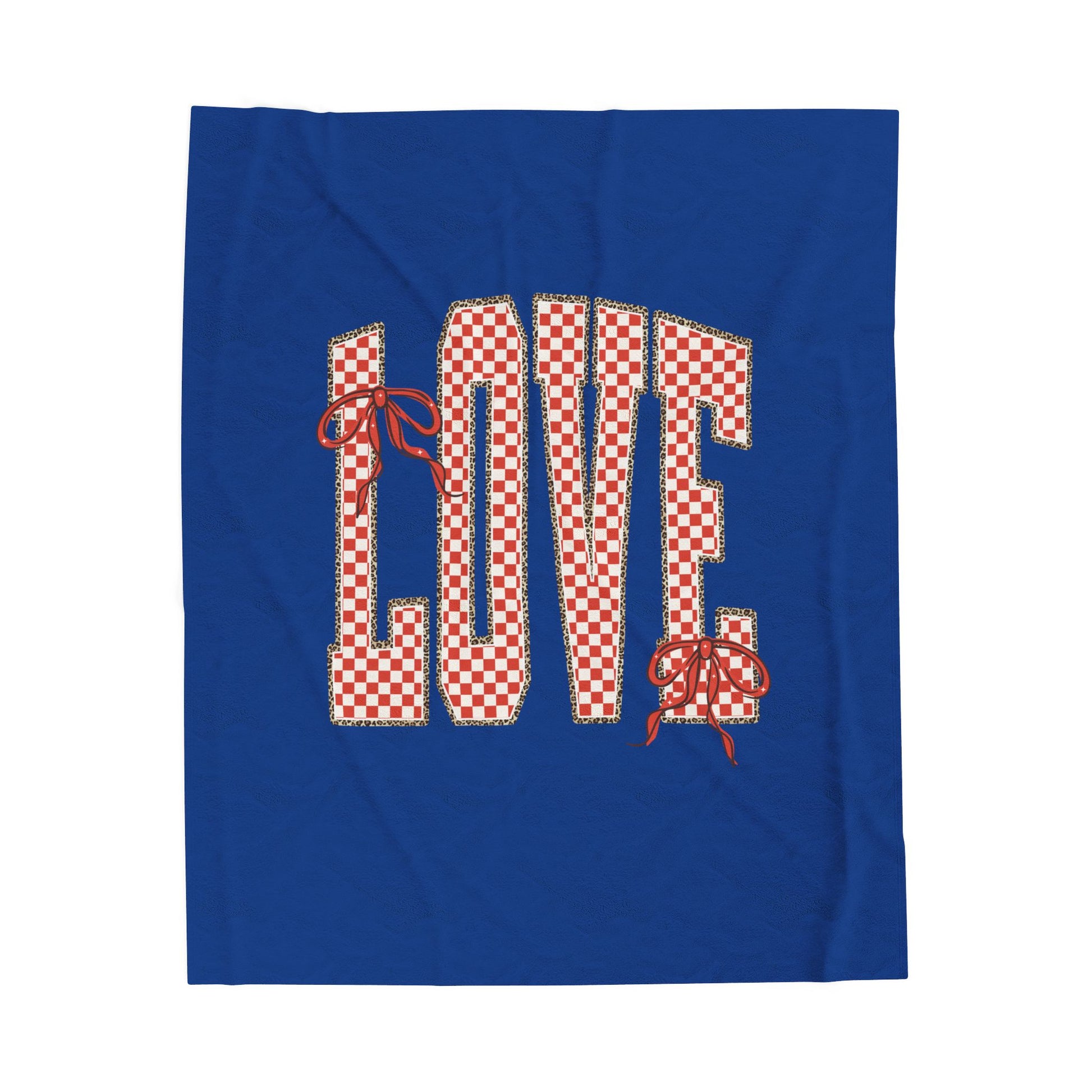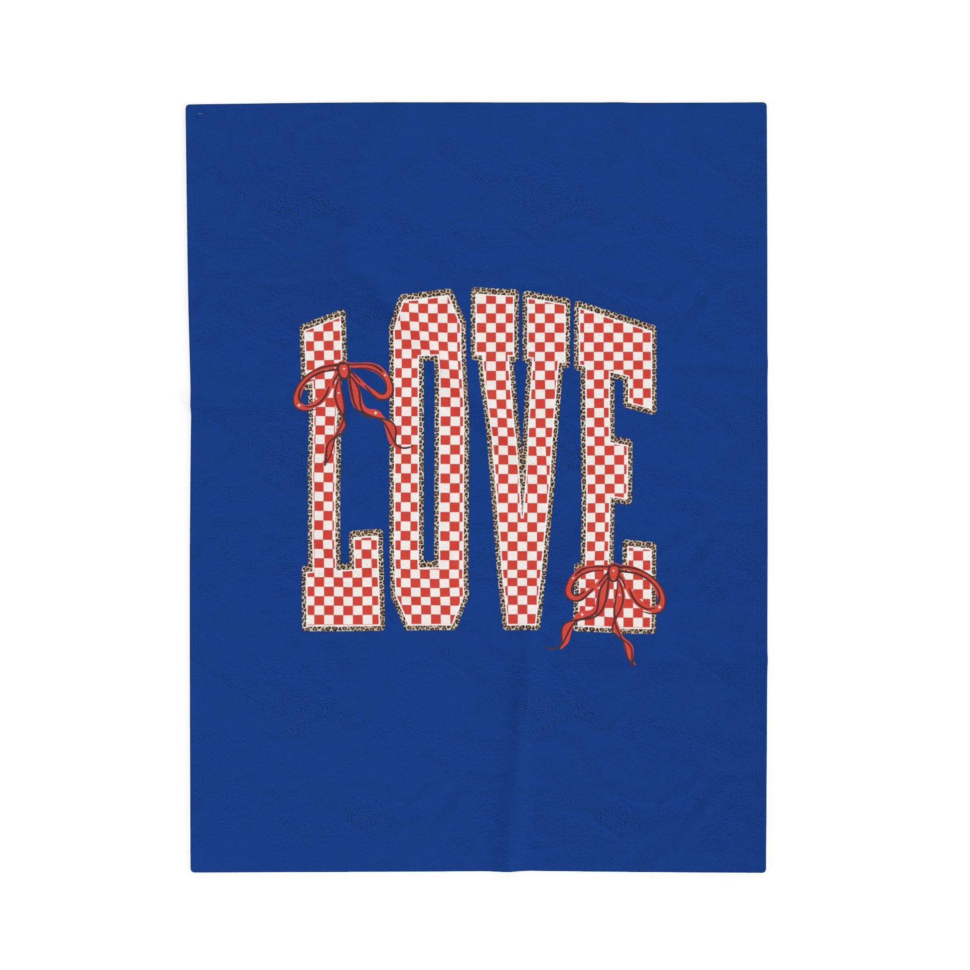 Velveteen Plush Blanket — LOVE with Bows & Checkered Lining